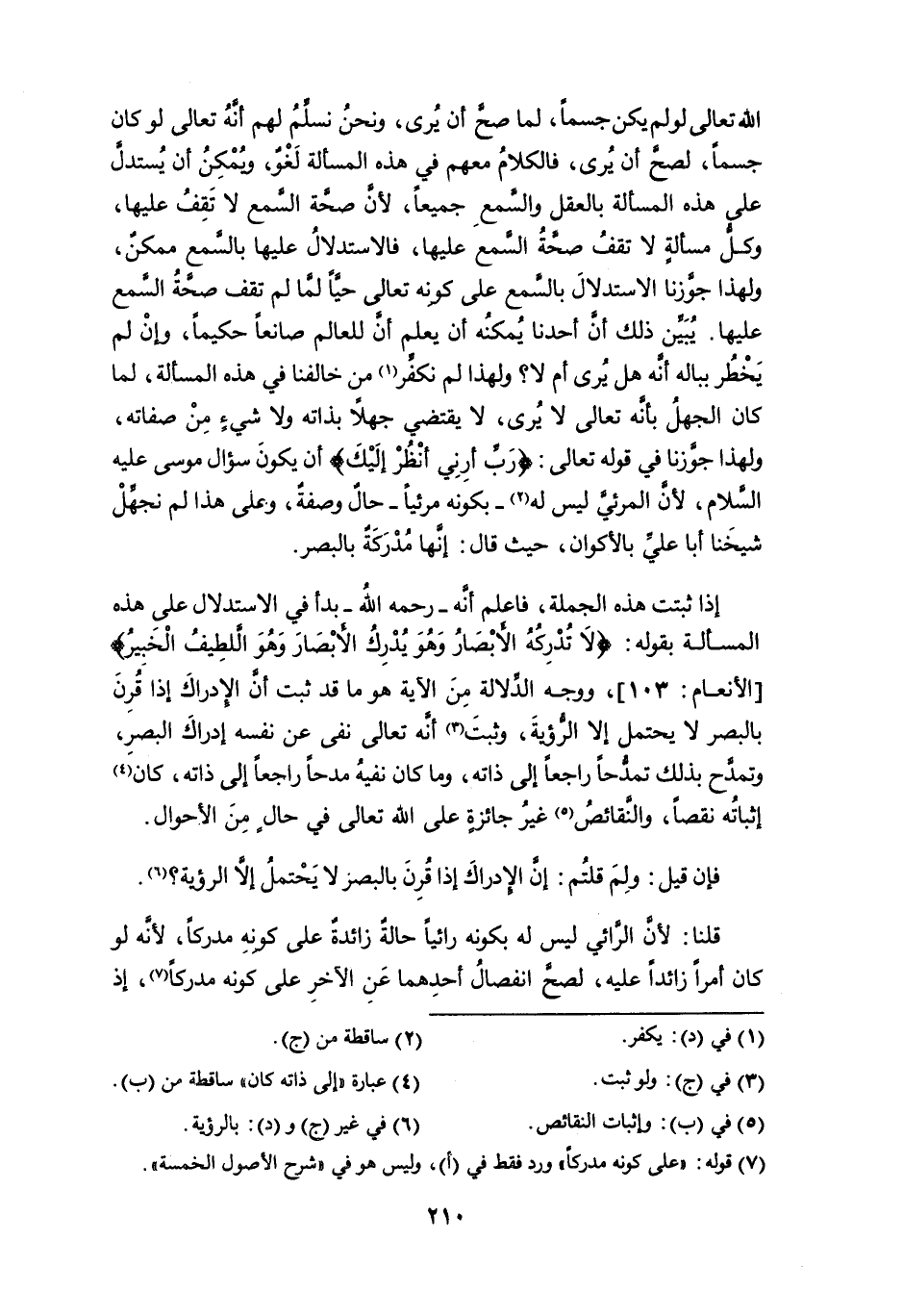 (¬7) قوله: " على كونه مدركاً " ورد فقط في (أ)، وليس هو في " شرح الأصول الخمسة ".