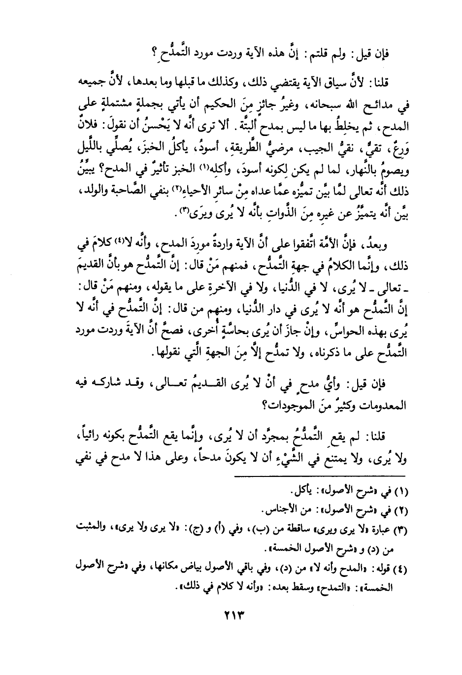(¬4) قوله: " المدح وأنه لا " من (د)، وفي باقي الأصول بياض مكانها، وفي " شرح الأصول الخمسة ": " التمدح " وسقط بعده: " وأنه لا كلام في ذلك ".