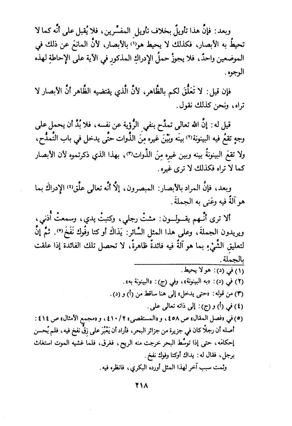 وبعد: فإن هذا تأويلٌ بخلاف تأويل المفسرين، فلا يقبل على أنه كما لا تحيط به الأبصار، فكذلك لا يحيط هو (¬1) بالأبصار، لأن المانع عن ذلك في الموضعين واحدٌ، فلا يجوز حمل الإدراك المذكور في الآية على الإحاطة لهذه الوجوه.