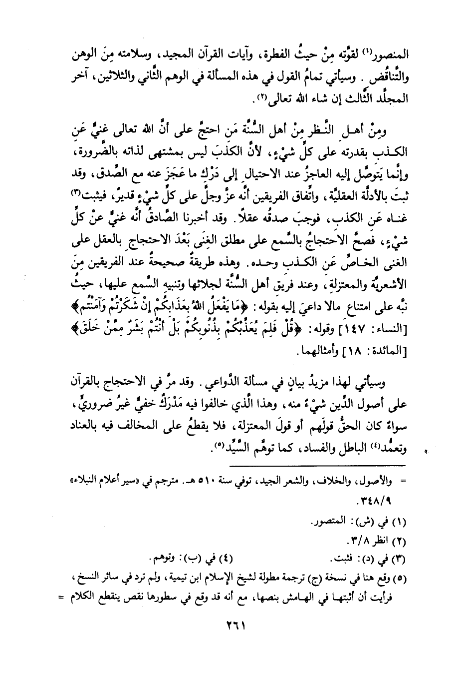 المنصور (¬1) لقوَّته من حيث الفطرة، وآيات القرآن المجيد، وسلامته من الوهن والتناقُض. وسيأتي تمام القول في هذه المسألة في الوهم الثاني والثلاثين، آخر المجلد الثالث إن شاء الله تعالى (¬2).