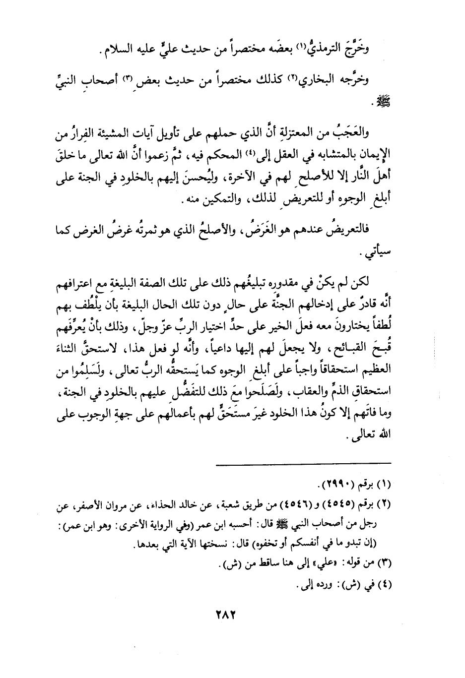 والعَجَبُ من المعتزلة أن الذي حملهم على تأويل آيات المشيئة الفرار من الإيمان بالمتشابه في العقل إلى (¬4) المحكم فيه، ثم زعموا أن الله تعالى ما خلق أهل النار إلاَّ للأصلح لهم في الأخرة، وليُحسن إليهم بالخلود في الجنة على أبلغِ الوجوهِ أو للتعريض لذلك، والتمكين منه.