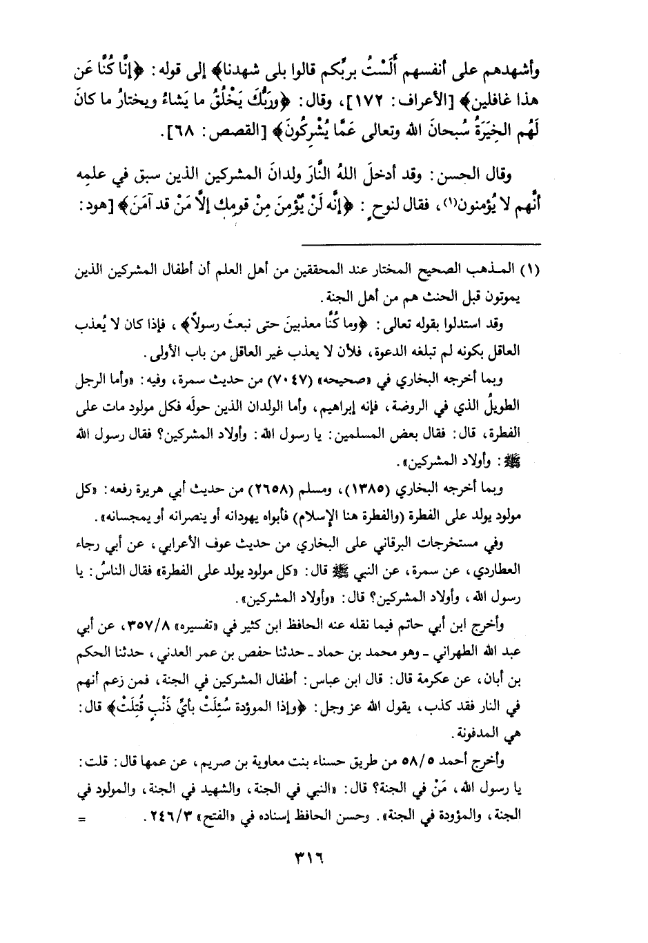 (¬1) المذهب الصحيح المختار عند المحققين من أهل العلم أن أطفال المشركين الذين يموتون قبل الحنث هم من أهل الجنة.