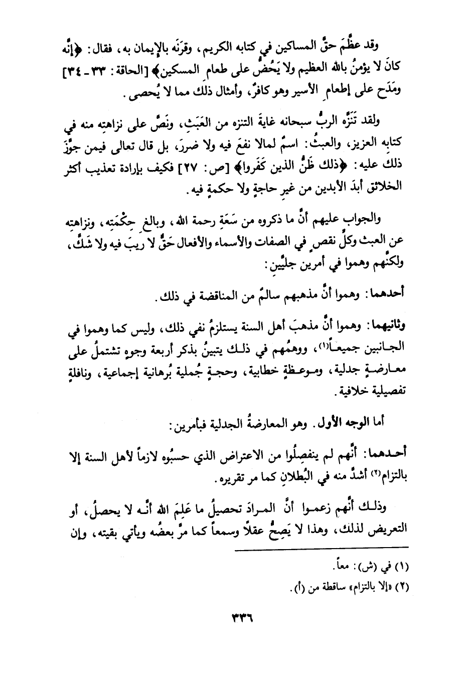 أحدهما: أنهم لم ينفصلوا من الاعتراض الذي حسبُوه لازماً لأهل السنة إلا بالتزام (¬2) أشدَّ منه في البطلان كما مر تقريره.