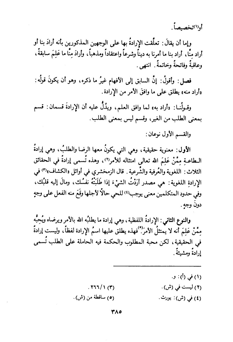 وقولُنا: " أراد به " لما وافق العلم، ويدل عليه أن الإرادة قسمان: قسم بمعنى الطلب من الغير، وقسم ليس بمعنى الطلب.