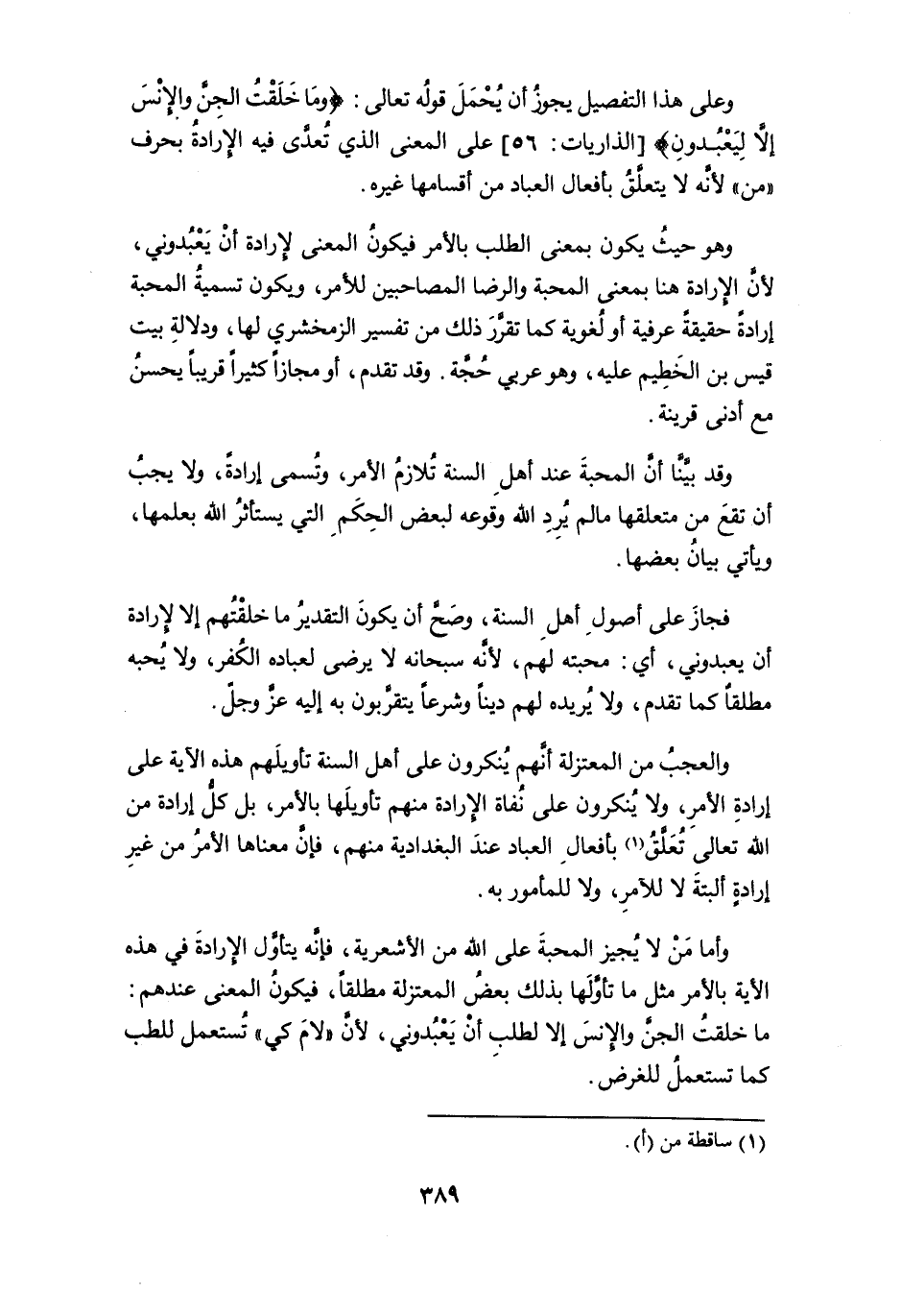 وعلى هذا التفصيل يجوز أن يُحمل قوله تعالى: {وَمَا خَلَقْتُ الْجِنَّ وَالْإِنْسَ إِلَّا لِيَعْبُدُونِ} [الذاريات: 56] على المعنى الذي تُعدَّى فيه الإرادة بحرف " من " لأنه لا يتعلَّقُ بأفعال العباد من أقسامها غيره.