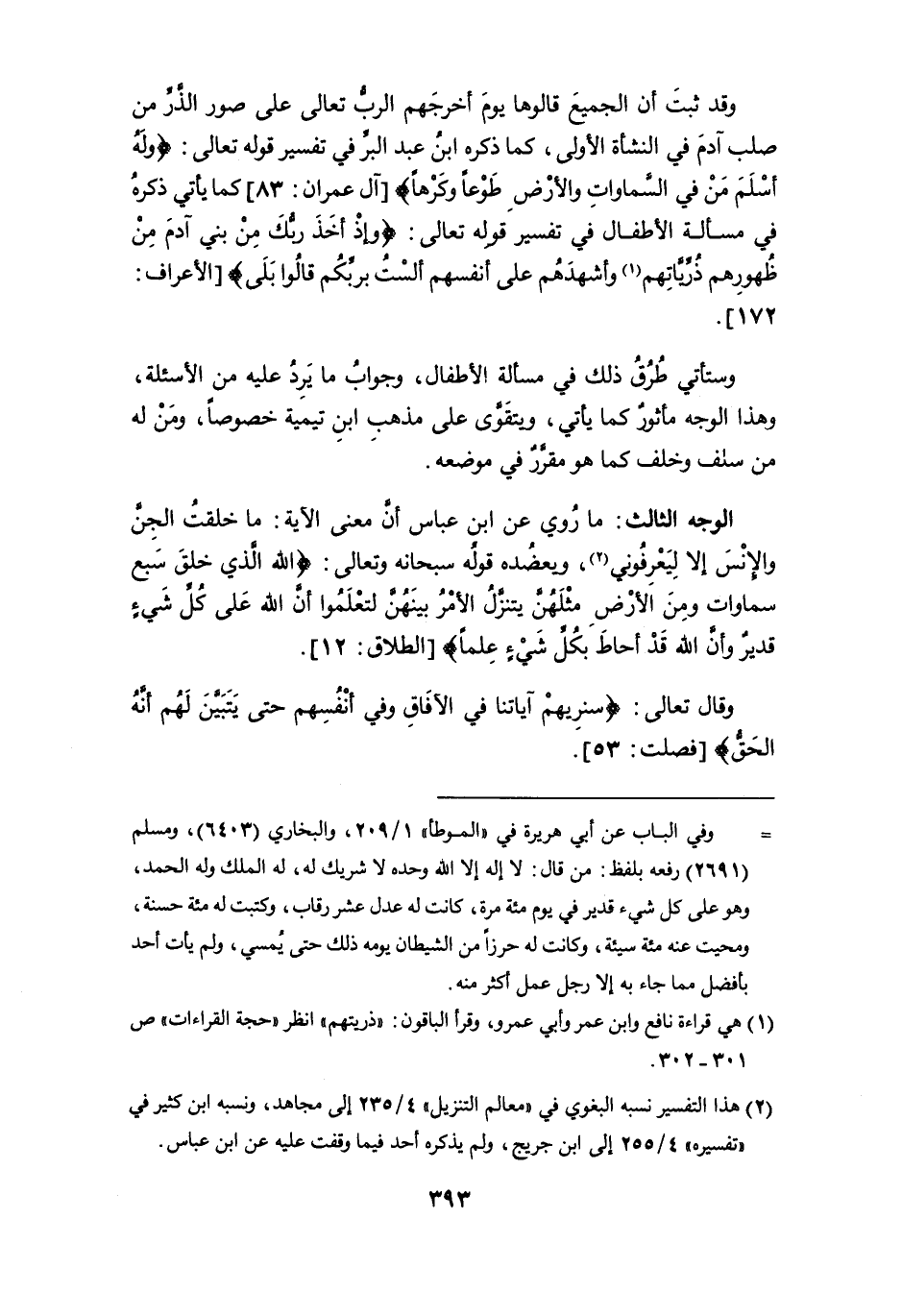وستأتي طرق ذلك في مسألة الأطفال، وجوابُ ما يَرِدُ عليه من الأسئلة، وهذا الوجه مأثورٌ كما يأتي، ويتقوَّى على مذهب ابن تيمية خصوصاً، ومن له من سلف وخلف كما هو مقرَّرٌ في موضعه.