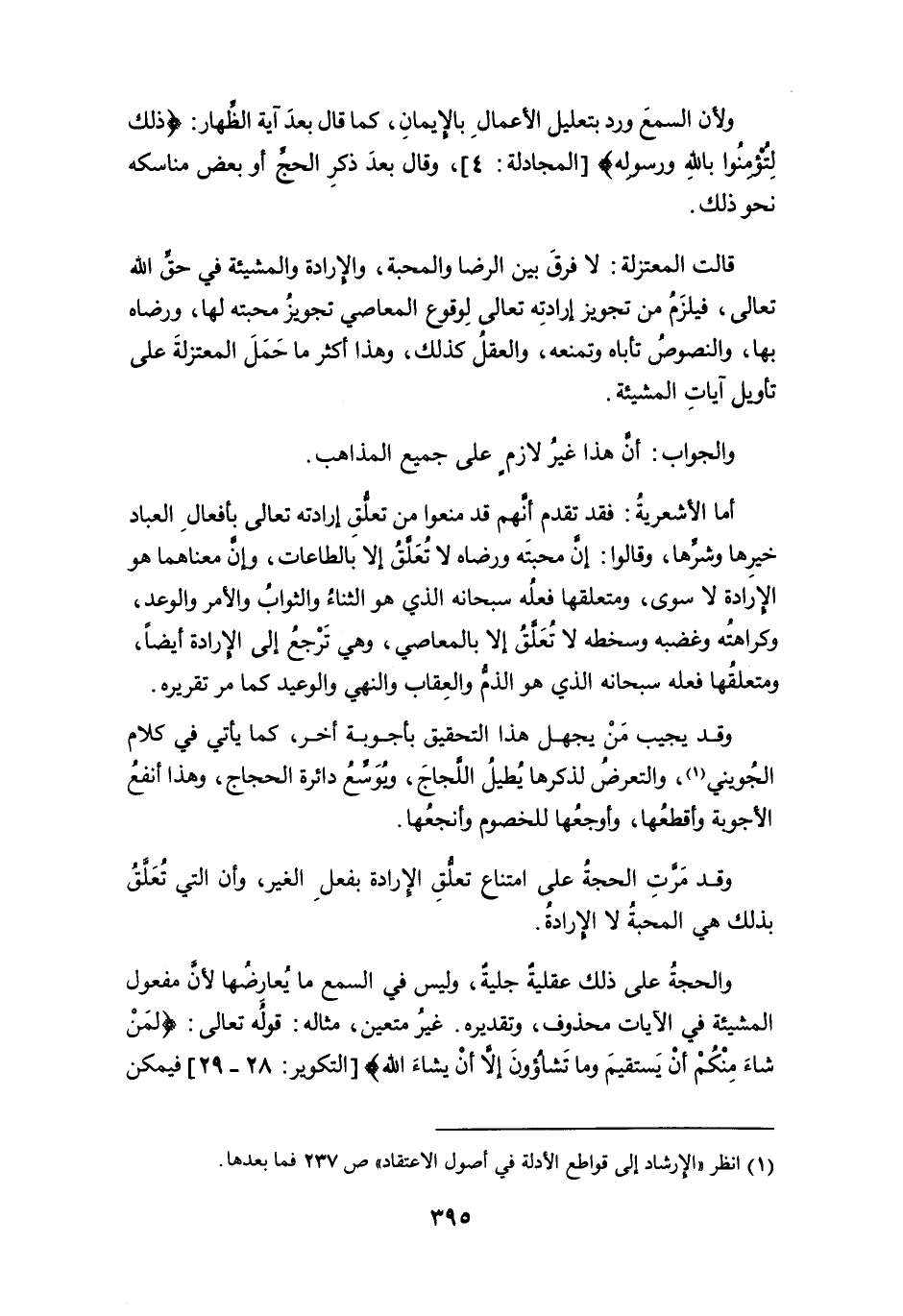 (¬1) انظر " الإرشاد إلى قواطع الأدلة في أصول الاعتقاد " ص 237 فما بعدها.