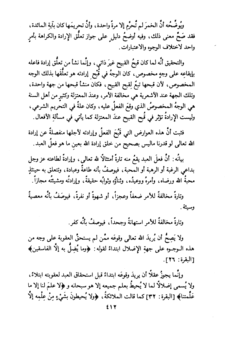 فثبت أن هذه العوارض التي قُبح الفعل وإرادته لأجلها منفصلة عن إرادة الله تعالى لو قدرنا ما ليس بصحيح من خلق إرادة الله بعين ما هو فعل العبد.