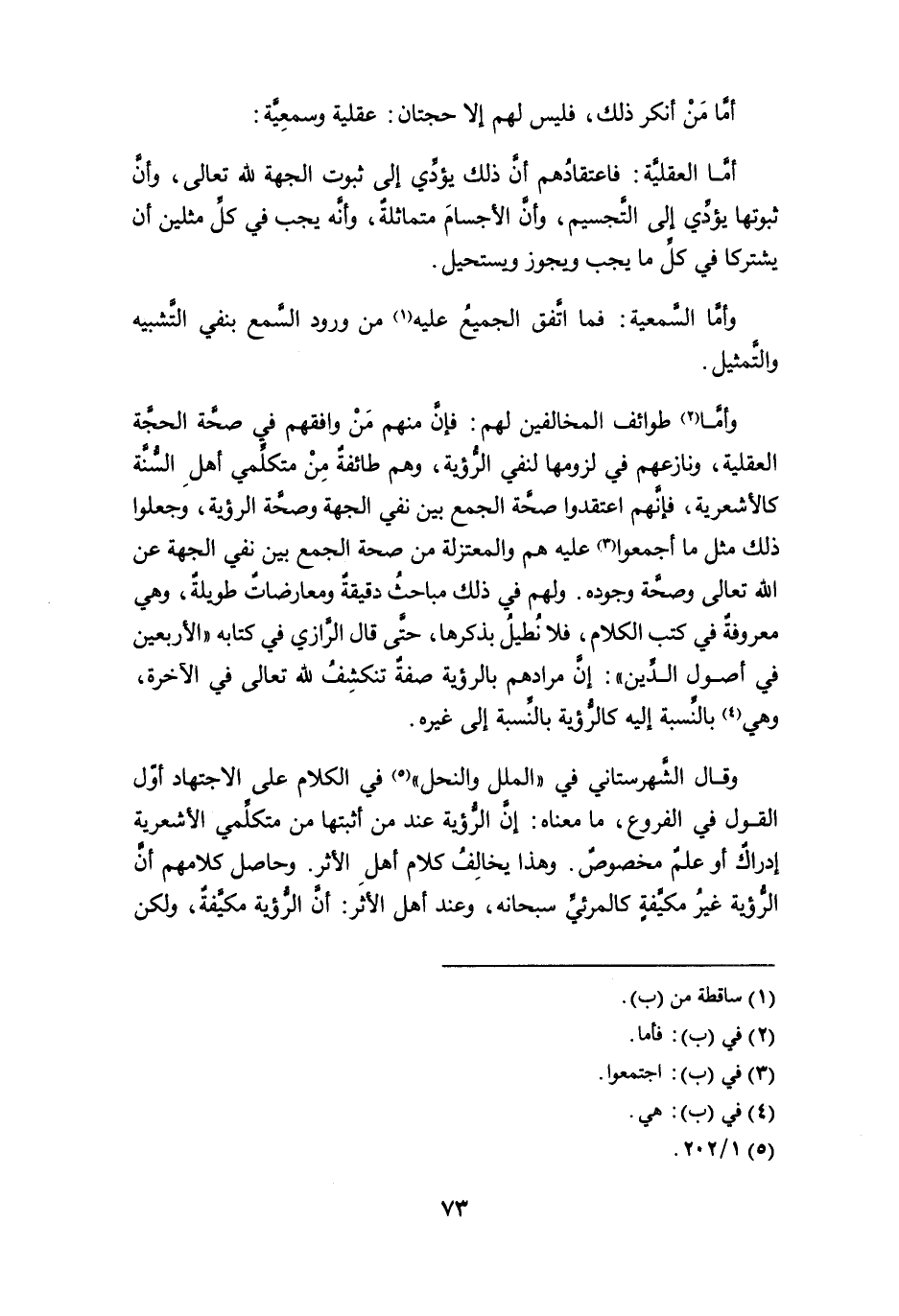 وقال الشهرستاني في " الملل والنحل " (¬5) في الكلام على الاجتهاد أوّل القول في الفروع، ما معناه: إن الرؤية عند من أثبتها من متكلمي الأشعرية إدراكٌ أو علمٌ مخصوصٌ. وهذا يخالِفُ كلام أهل الأثره وحاصل كلامهم أن الرُّؤية غير مكيفةٍ كالمرئي سبحانه، وعند أهل الأثر: أن الرؤية مكيفةٌ، ولكن