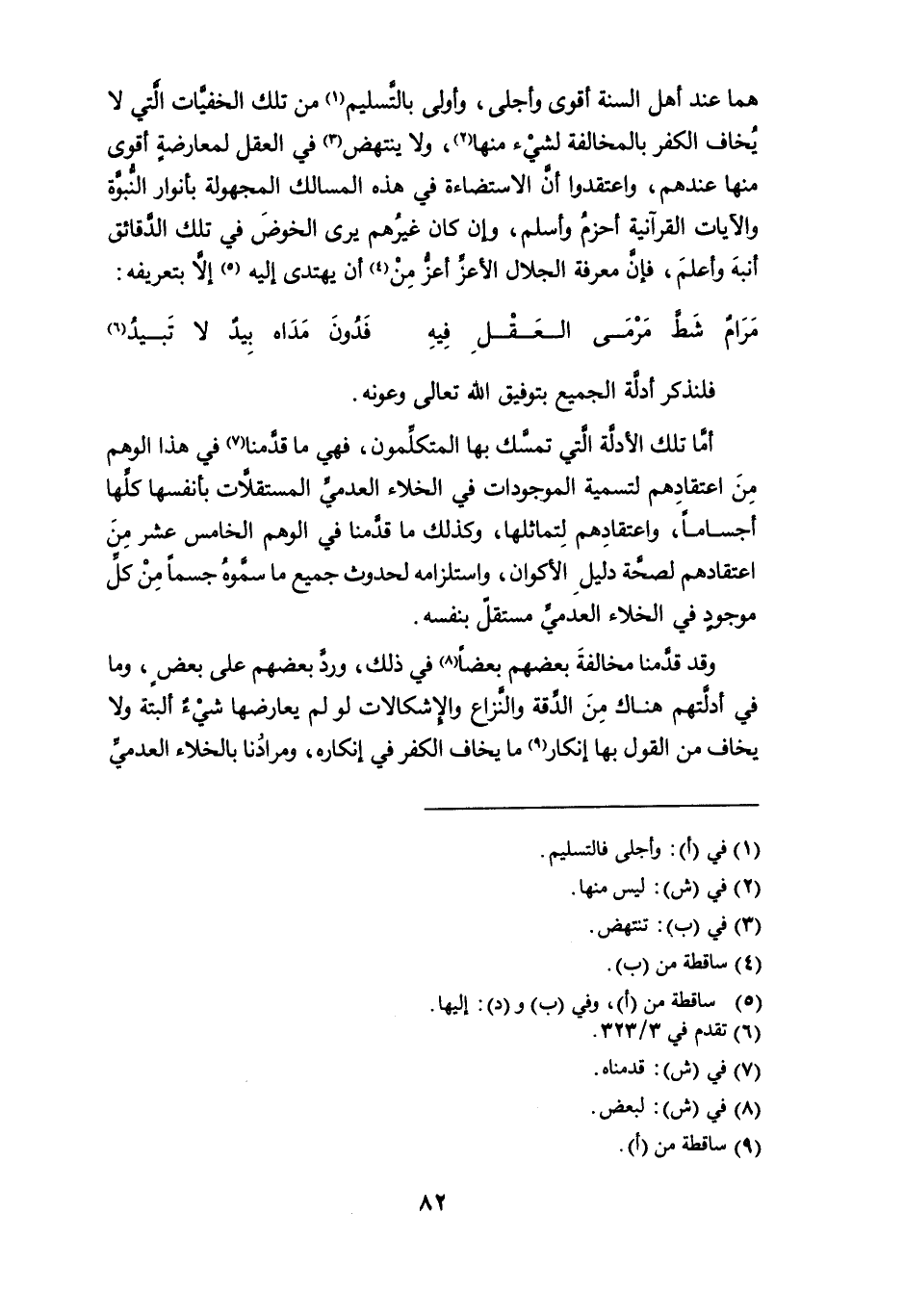 وقد قدمنا مخالفة بعضهم بعضاً (¬8) في ذلك، ورد بعضهم على بعض، وما في أدلتهم هناك من الدقة والنزاع والإشكالات لو لم يعارضها شيءٌ ألبتة ولا يخاف من القول بها إنكار (¬9) ما يخاف الكفر في إنكاره، ومرادنا بالخلاء العدميِّ