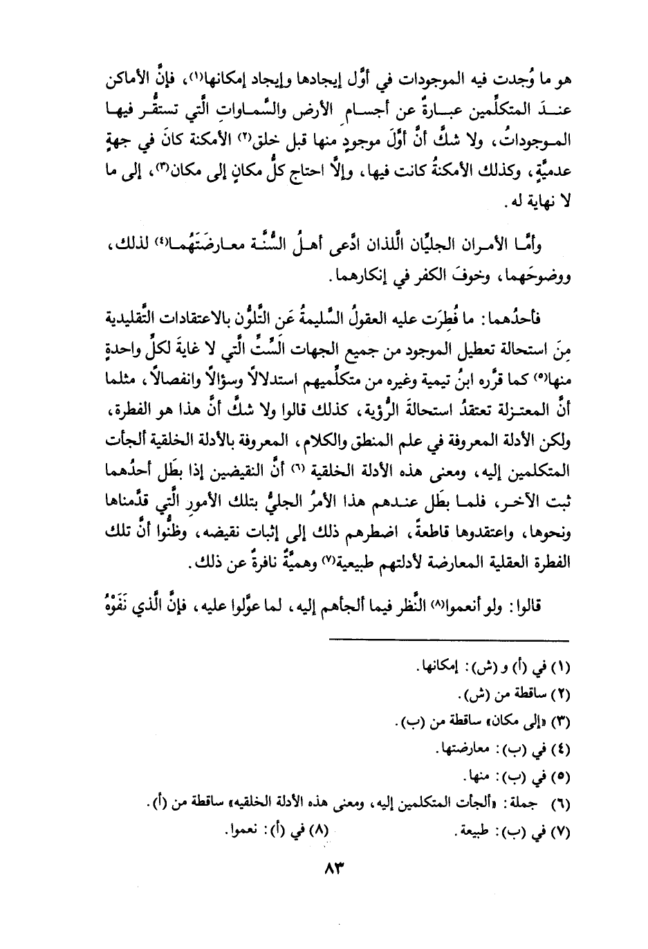 (¬6) جملة: " ألجأت المتكلمين إليه، ومعنى هذه الأدلة الخلقيه " ساقطة من (أ).