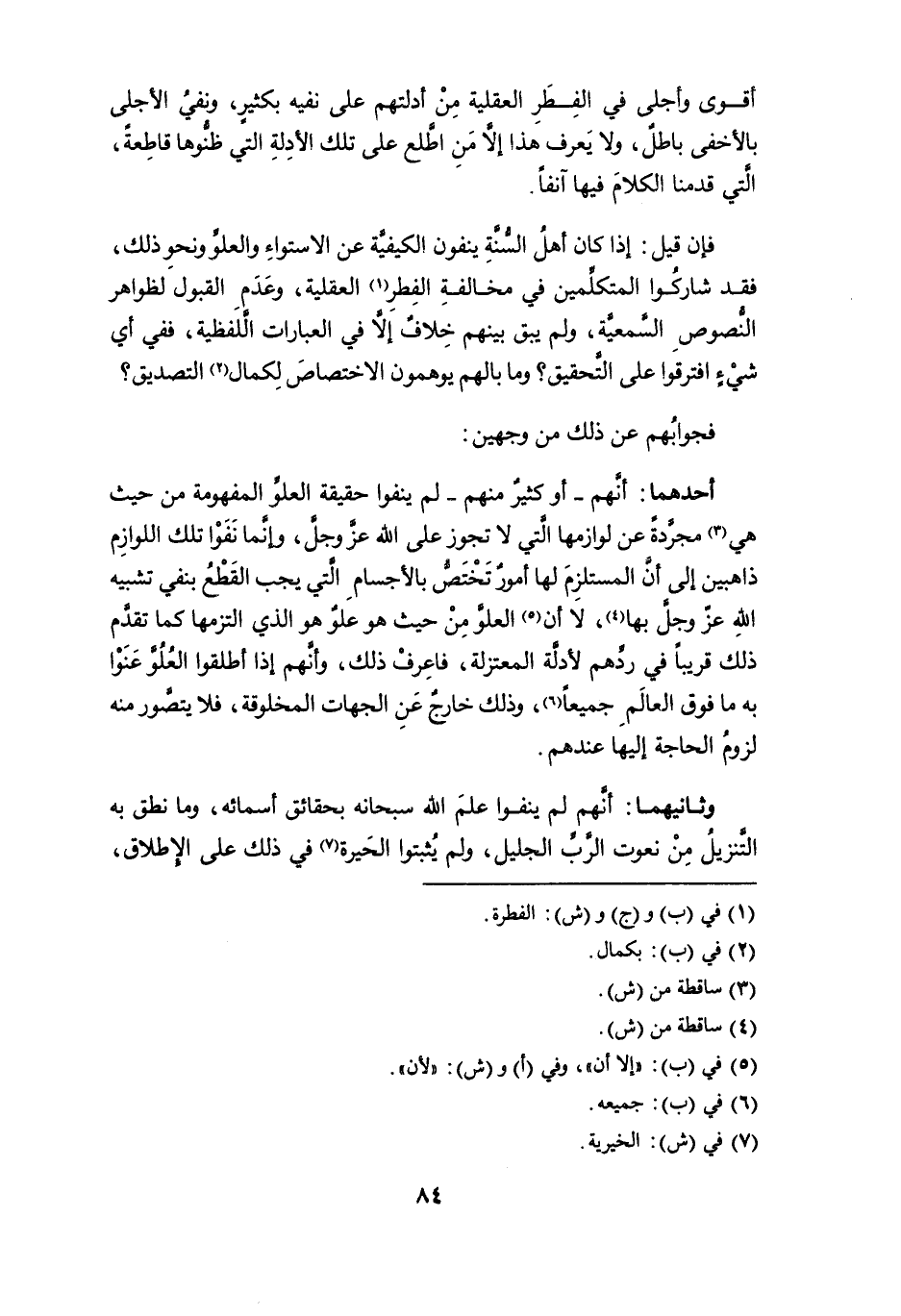 فإن قيل: إذا كان أهل السنة ينفون الكيفيَّة عن الاستواء والعلوِّ ونحو ذلك، فقد شاركوا المتكلمين في مخالفه الفطر (¬1) العقلية، وعدم القبول لظواهر النصوص السمعية، ولم يبق بينهم خلافٌ إلاَّ في العبارات اللفظية، ففي أي شيءٍ افترقوا على التَّحقيق؟ وما بالهم يوهمون الاختصاص لكمال (¬2) التصديق؟ فجوابهم عن ذلك من وجهين: