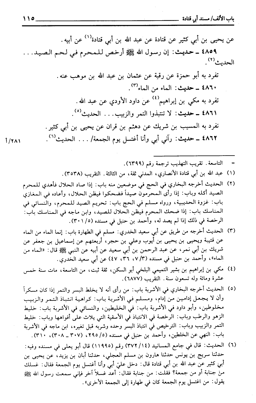 عَن يحيى بن أبي كثير عَن قَتَادَة عَن عبد الله بن أبي قَتَادَة عَن أَبِيه.
