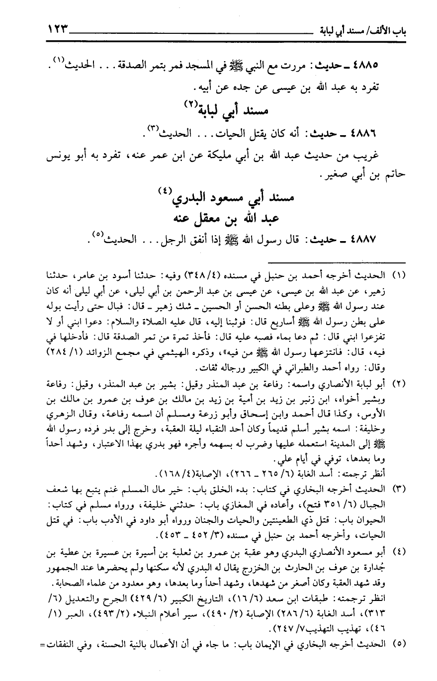 مُسْند أبي مَسْعُود البدري عبد الله بن معقل عَنهُ