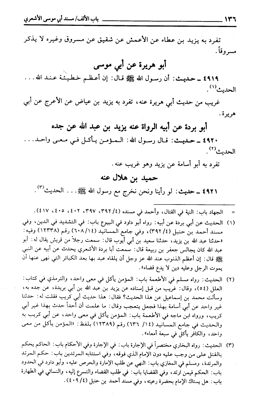 4920 - حَدِيث: قَالَ رَسُول الله: الْمُؤمن يَأْكُل فِي معى وَاحِد ... الحَدِيث.