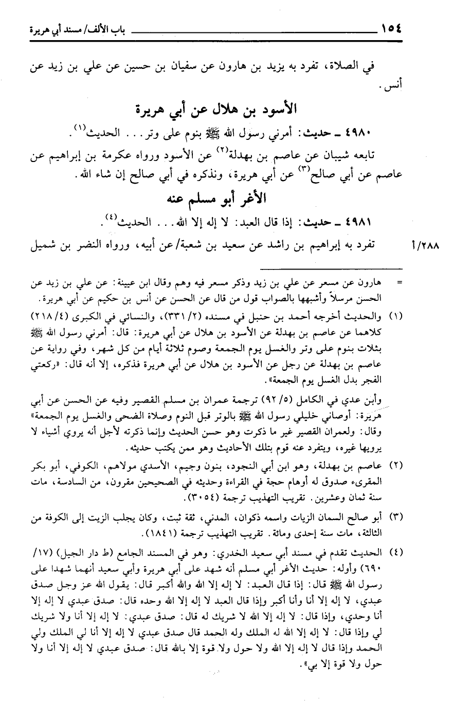 4980 - حَدِيث: أَمرنِي رَسُول الله بنوم على وتر ... الحَدِيث.