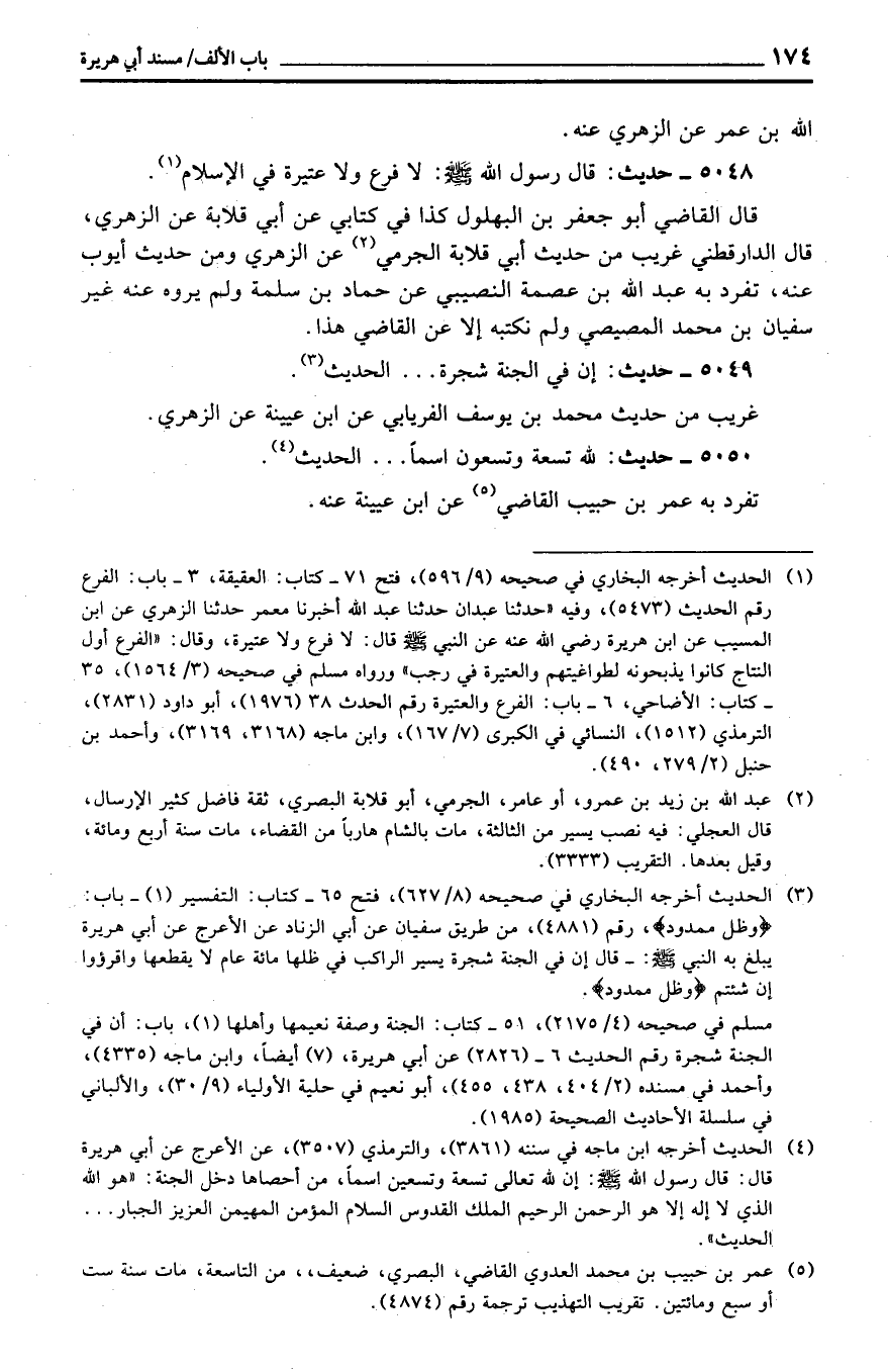 5048 - حَدِيث: قَالَ رَسُول الله: لَا فرع وَلَا عتيرة فِي الْإِسْلَام.