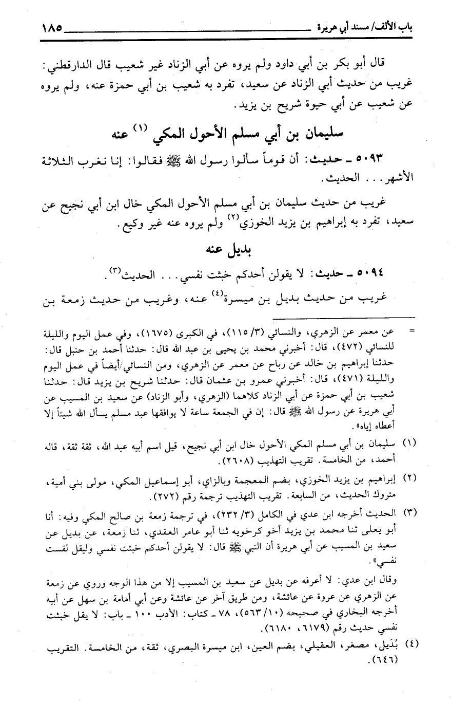 قَالَ أَبُو بكر بن أبي دَاوُد وَلم يروه عَن أبي الزِّنَاد غير شُعَيْب قَالَ الدَّارَقُطْنِيّ: غَرِيب من حَدِيث أبي الزِّنَاد عَن سعيد، تفرد بِهِ شُعَيْب بن أبي حَمْزَة عَنهُ، وَلم يروه عَن شُعَيْب عَن أبي حَيْوَة شُرَيْح بن يزِيد.