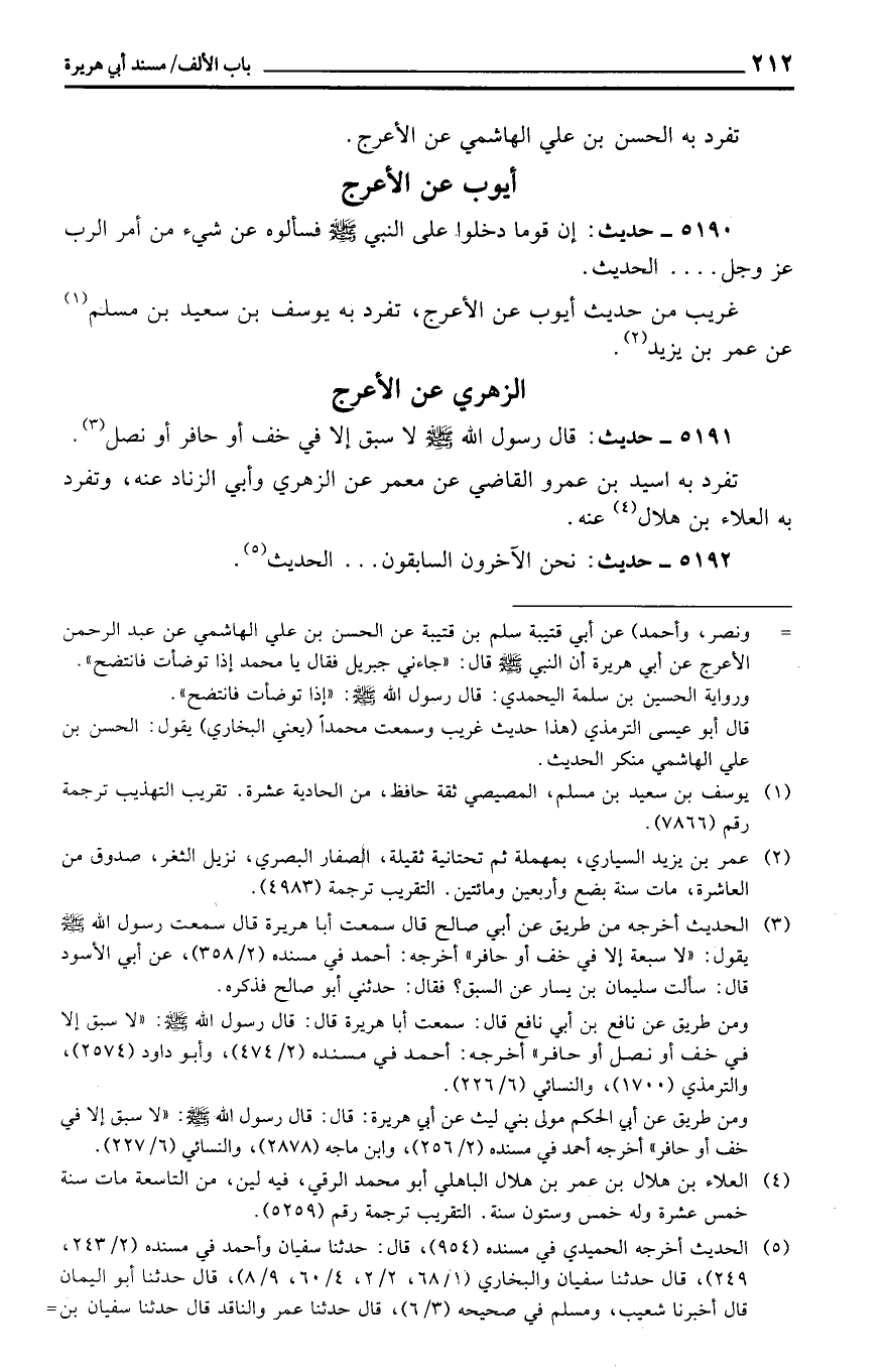 5191 - حَدِيث: قَالَ رَسُول الله لَا سبق إِلَّا فِي خف أَو حافر أَو نصل.