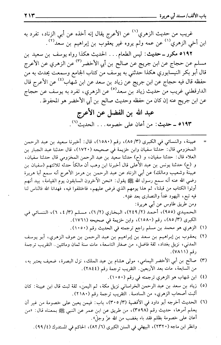 5192 - مُكَرر - حَدِيث: لَيْسَ الطَّعَام ... الحَدِيث هَكَذَا رَوَاهُ يُوسُف بن سعيد بن مُسلم عَن حجاج عَن ابْن جريج عَن صَالح بن أبي الْأَخْضَر عَن الزُّهْرِيّ عَن الْأَعْرَج قَالَ أَبُو بكر النَّيْسَابُورِي هَكَذَا حَدثنِي بِهِ يُوسُف من كتاب الْجَامِع وَسمعت يحدث بِهِ من حفظه قَالَ فِيهِ حجاج عَن ابْن جريج عَن زِيَاد بن سعد عَن ابْن شهَاب عَن الْأَعْرَج قَالَ الدَّارَقُطْنِيّ غَرِيب من حَدِيث زِيَاد بن سعد عَن الزُّهْرِيّ، تفرد بِهِ يُوسُف عَن حجاج عَن ابْن جريح عَنهُ إِن كَانَ من حفظه وَحَدِيث صَالح بن أبي الْأَخْضَر هُوَ الْمَحْفُوظ.