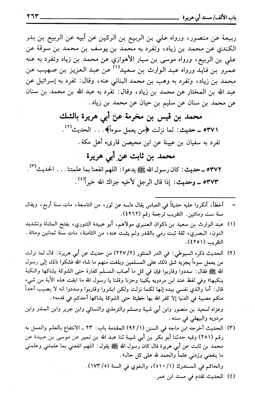 ربيعَة عَن مَنْصُور، وَرَوَاهُ عَليّ بن الرّبيع بن الركين عَن أَبِيه عَن الرّبيع بن بدر الْكِنْدِيّ عَن مُحَمَّد بن زِيَاد، وَتفرد بِهِ مُحَمَّد بن يُوسُف بن مُحَمَّد بن سوقة عَن عَليّ بن الرّبيع، وَرَوَاهُ مُوسَى بن سيار الْأَهْوَازِي عَن مُحَمَّد بن زِيَاد وَتفرد بِهِ عَنهُ عَمْرو بن فَايِد وَرَوَاهُ عبد الْوَارِث بن سعيد عَن عبد الْعَزِيز بن صُهَيْب عَن مُحَمَّد بن زِيَاد، وَتفرد بِهِ وهب بن مُحَمَّد الْبنانِيّ عَنهُ، وَقَالَ: تفرد بِهِ إِسْرَائِيل عَن عبد الله بن الْمُخْتَار عَن مُحَمَّد بن زِيَاد، وَقَالَ: تفرد بِهِ عبد الله بن مُحَمَّد بن سِنَان عَن مُحَمَّد بن سِنَان عَن سليم بن حَيَّان عَن مُحَمَّد بن زِيَاد.