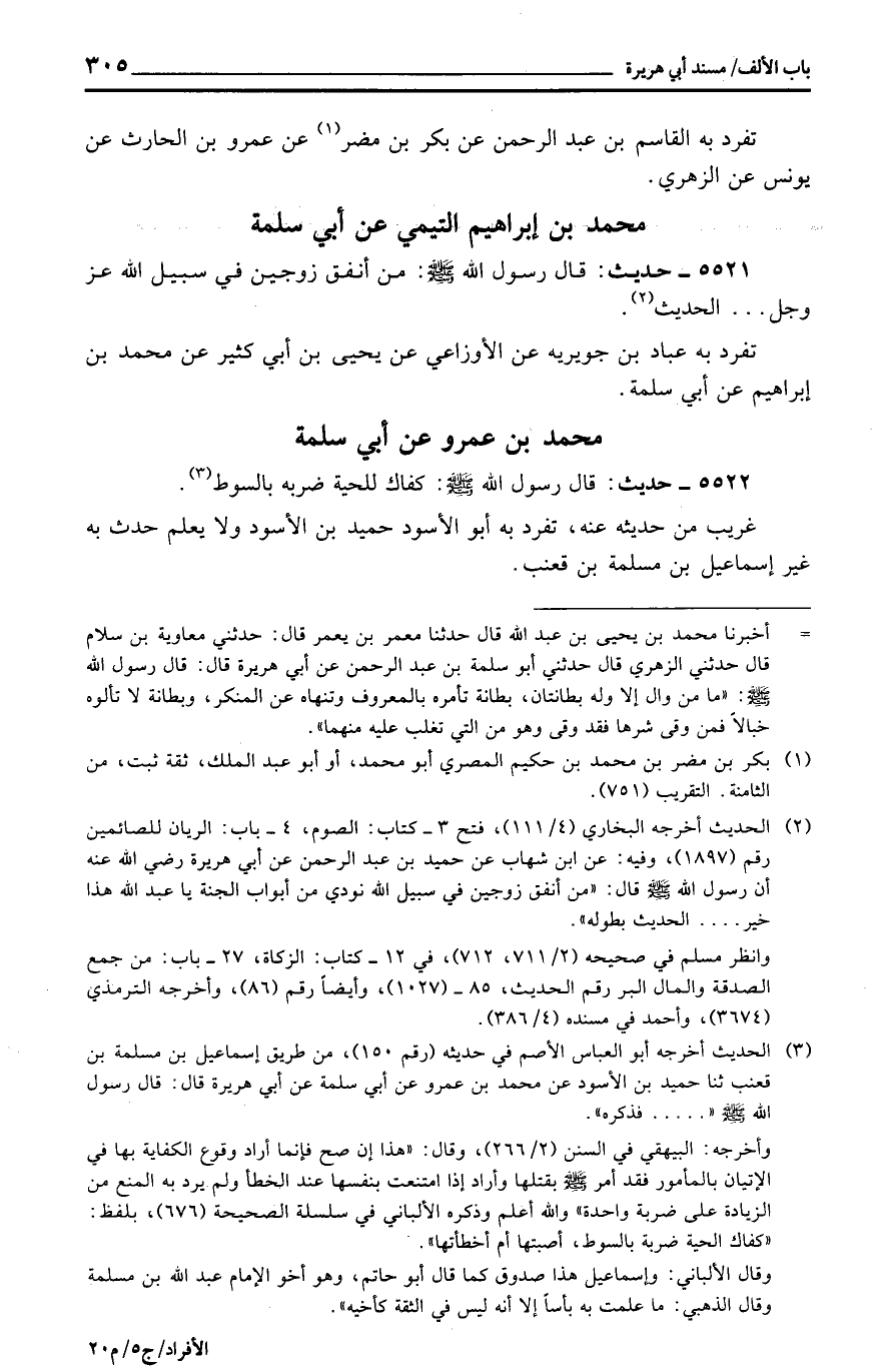 5522 - حَدِيث: قَالَ رَسُول الله: كَفاك للحية ضربه بِالسَّوْطِ.