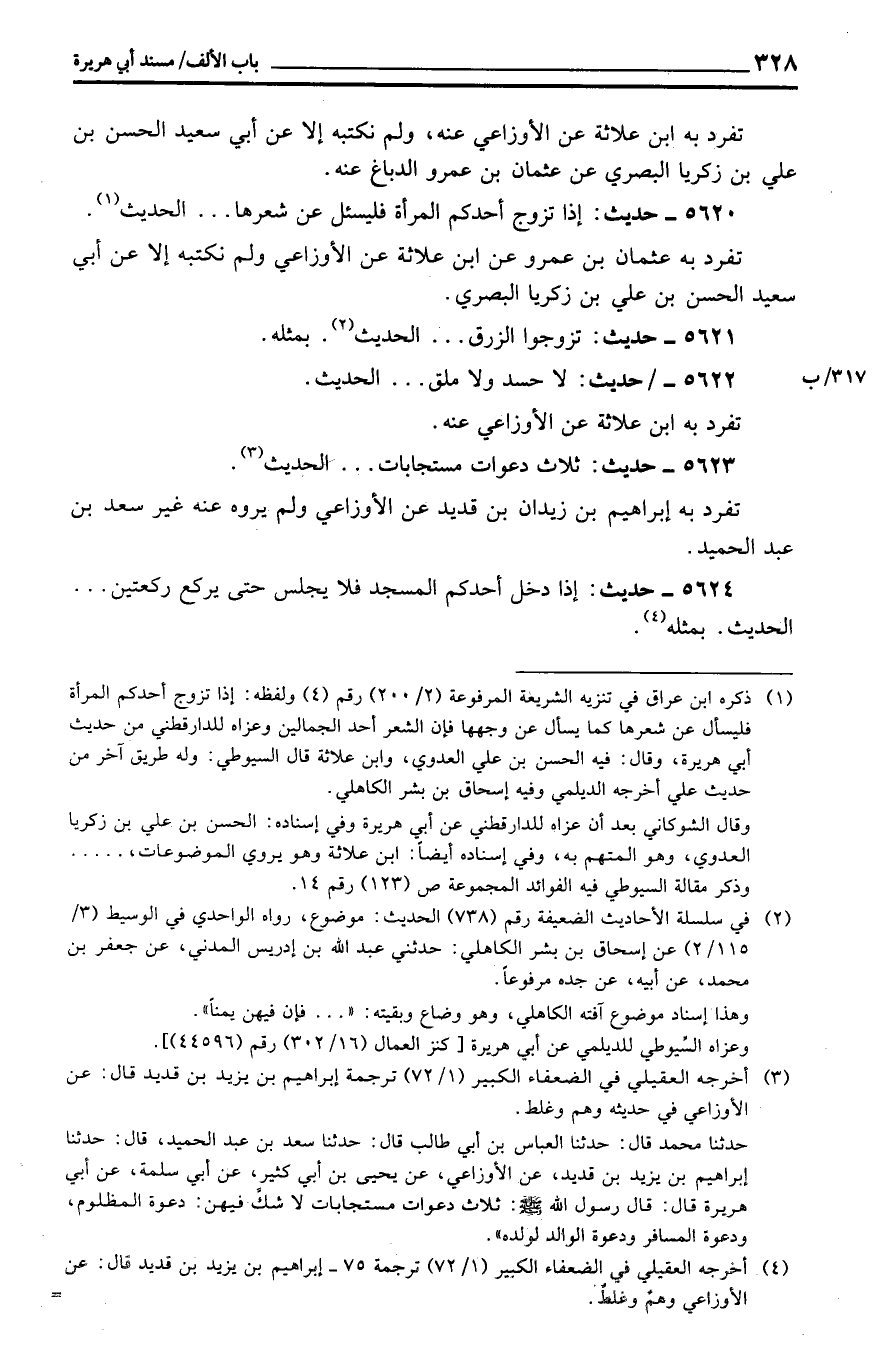 تفرد بِهِ عُثْمَان بن عَمْرو عَن ابْن علاثة عَن الْأَوْزَاعِيّ وَلم نَكْتُبهُ إِلَّا عَن أبي سعيد الْحسن بن عَليّ بن زَكَرِيَّا الْبَصْرِيّ.