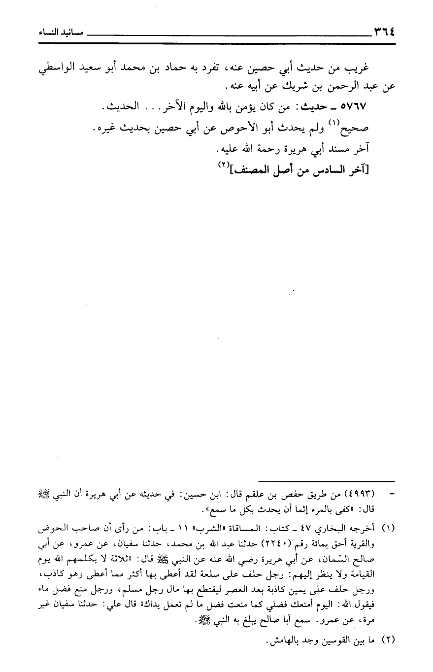 آخر مُسْند أبي هُرَيْرَة رَحْمَة الله عَلَيْهِ.