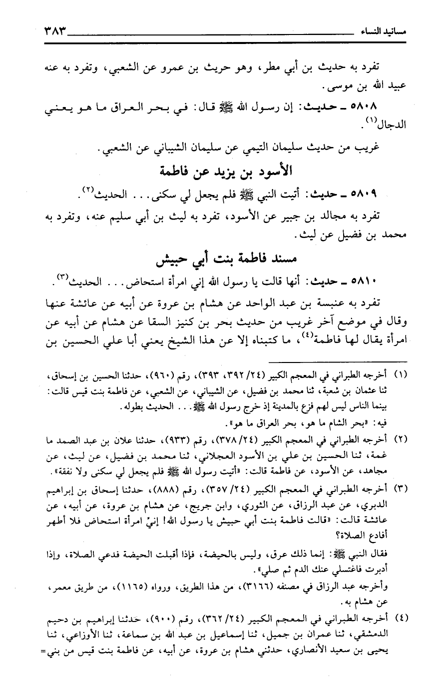 5810 - حَدِيث: أَنَّهَا قَالَت يَا رَسُول الله إِنِّي امْرَأَة استحاض ... الحَدِيث.