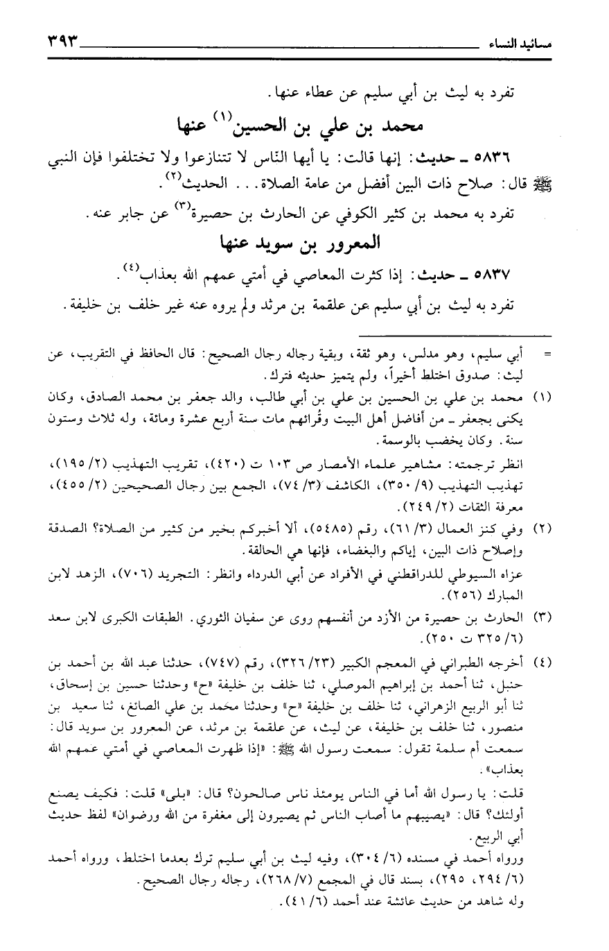 5836 - حَدِيث: إِنَّهَا قَالَت: يَا أَيهَا النَّاس لَا تتنازعوا وَلَا تختلفوا فَإِن النَّبِي قَالَ: صَلَاح ذَات الْبَين أفضل من عَامَّة الصَّلَاة ... الحَدِيث.