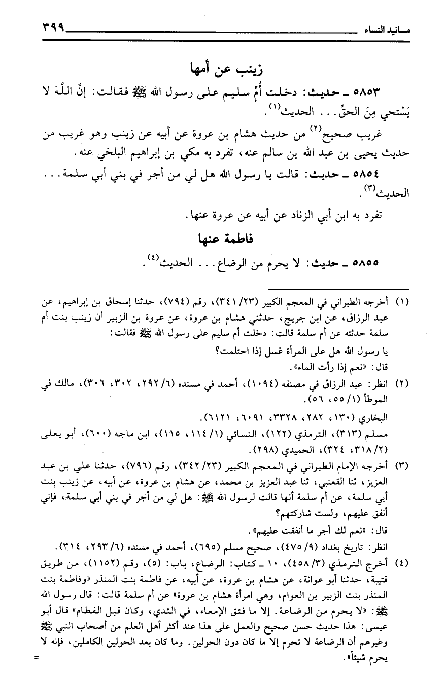 5853 - حَدِيث: دخلت أم سليم على رَسُول الله فَقَالَت: أَن الله لَا يستحي من الْحق ... الحَدِيث.