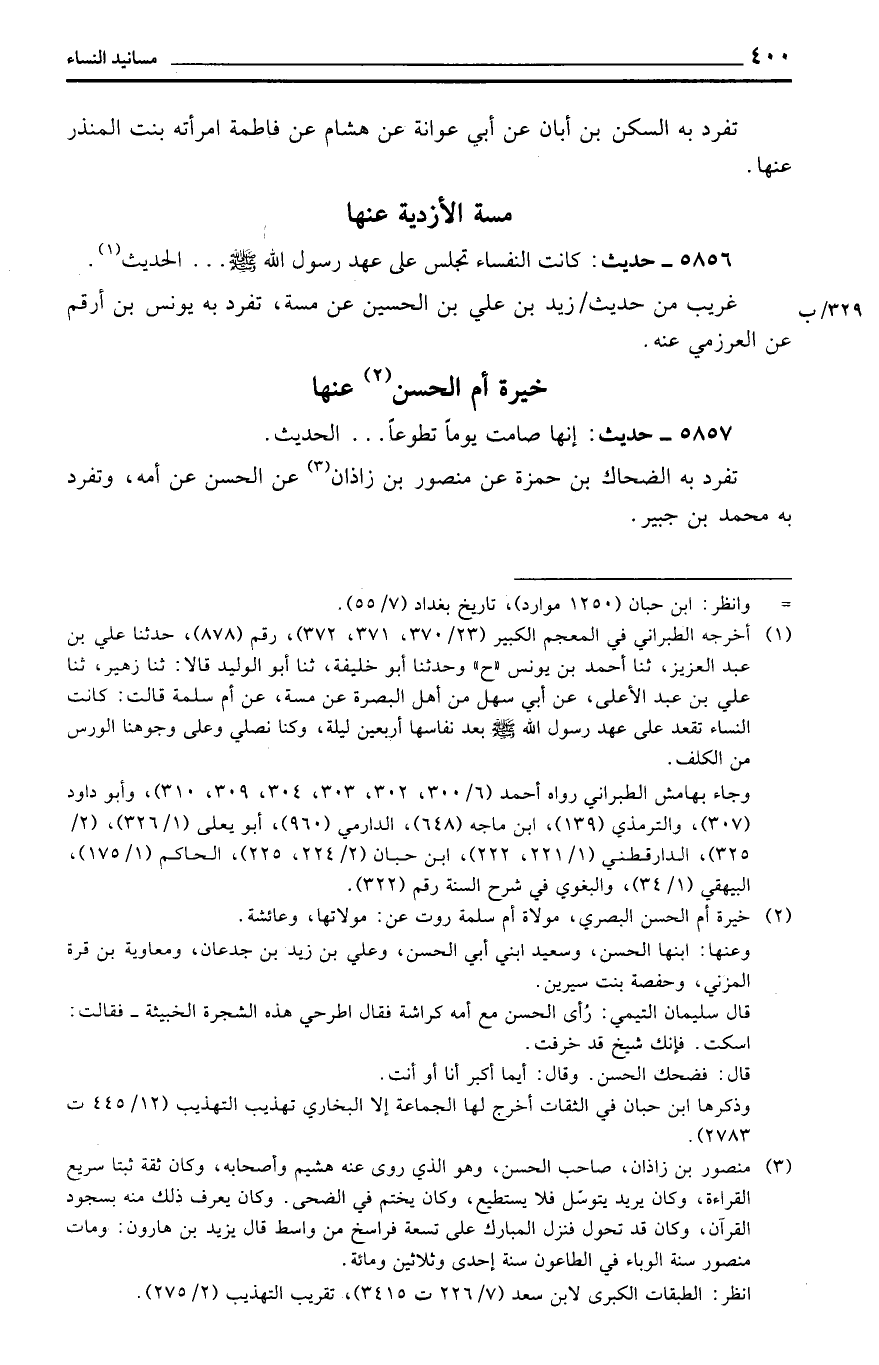 تفرد بِهِ الضَّحَّاك بن حَمْزَة عَن مَنْصُور بن زَاذَان عَن الْحسن عَن أمه، وَتفرد بِهِ مُحَمَّد بن جُبَير.