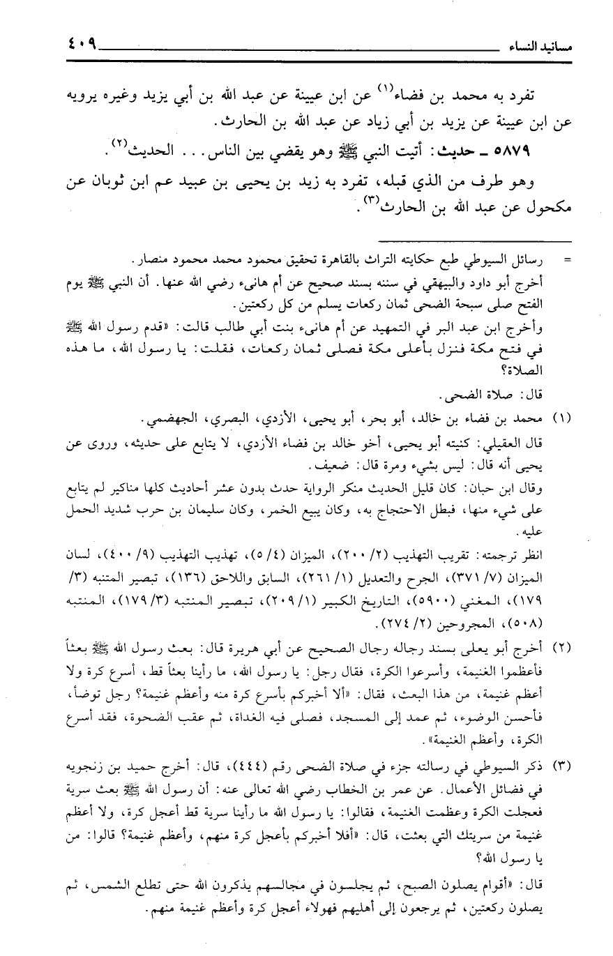تفرد بِهِ مُحَمَّد بن فضاء عَن ابْن عُيَيْنَة عَن عبد الله بن أبي يزِيد وَغَيره يرويهِ عَن ابْن عُيَيْنَة عَن يزِيد بن أبي زِيَاد عَن عبد الله بن الْحَارِث.