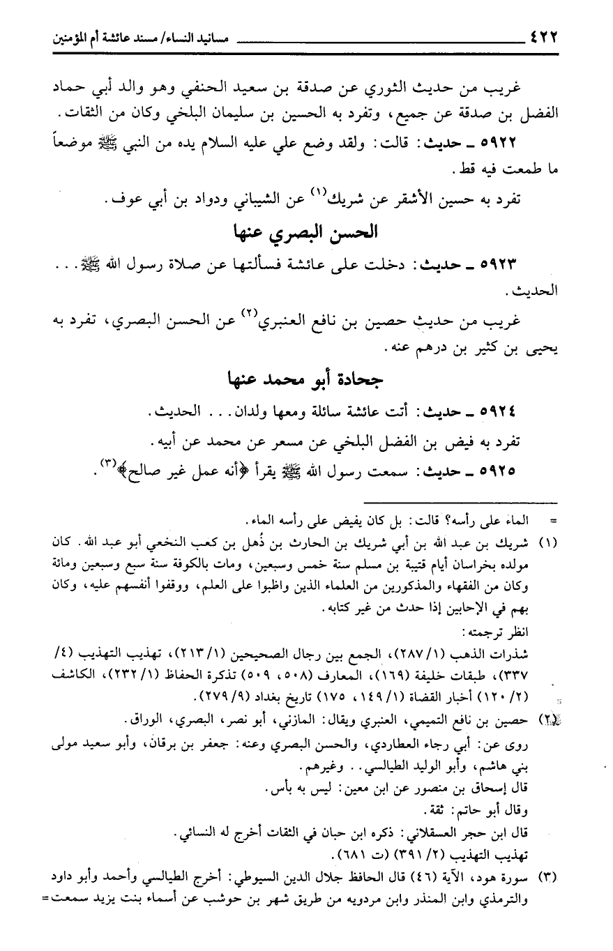5925 - حَدِيث: سَمِعت رَسُول الله يقْرَأ (أَنه عمل غير صَالح) .