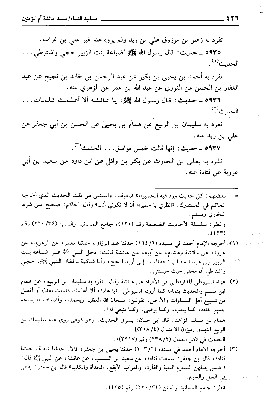 5935 - حَدِيث: قَالَ رَسُول الله لضباعة بنت الزبير حجي واشترطي ... الحَدِيث.