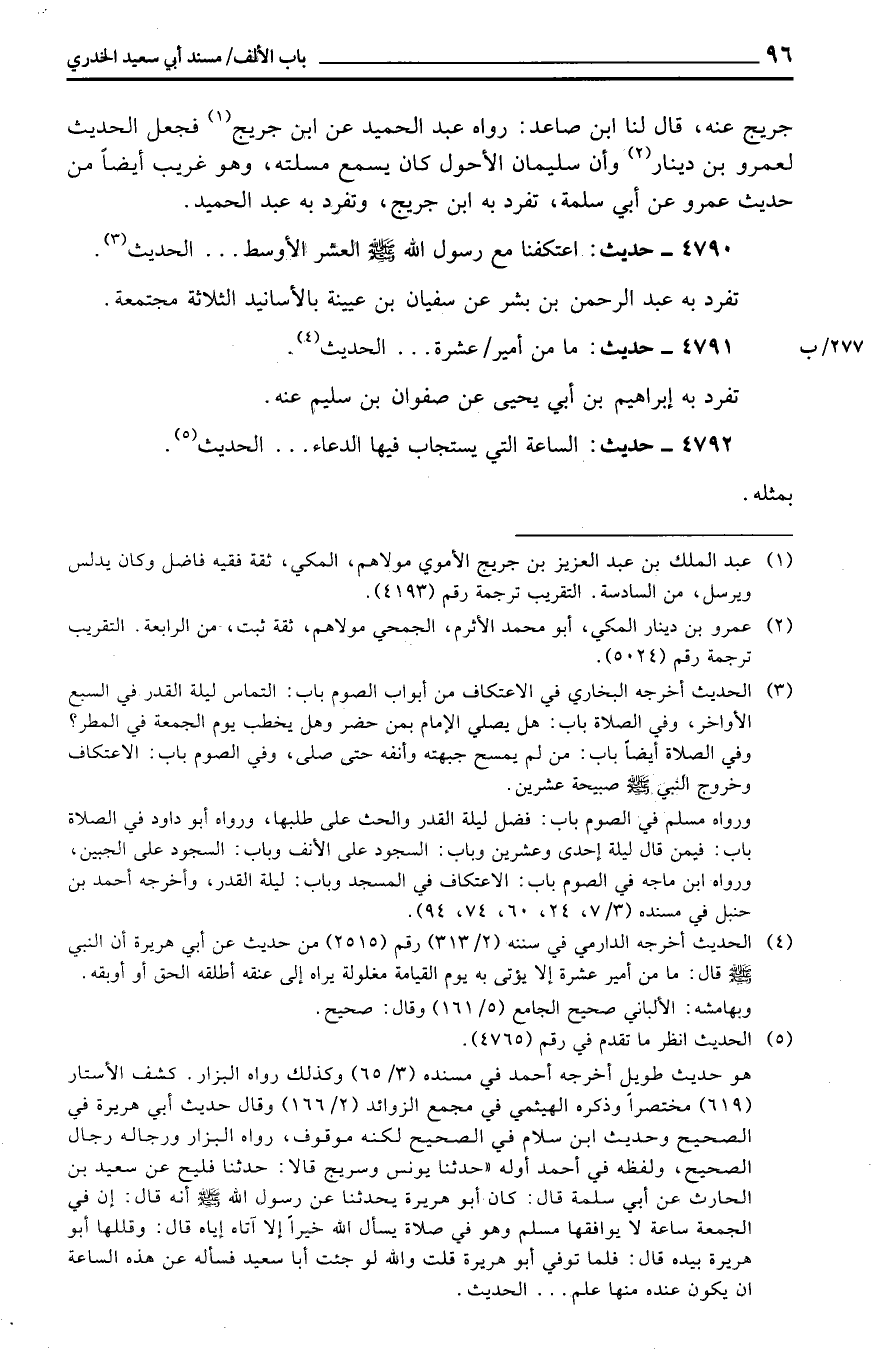 4792 - حَدِيث: السَّاعَة الَّتِي يُسْتَجَاب فِيهَا الدُّعَاء ... الحَدِيث. بِمثلِهِ.