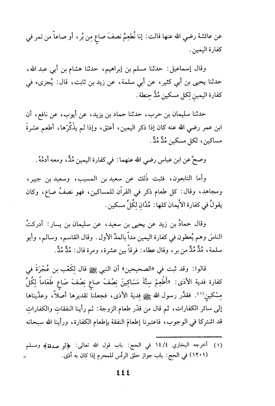 وَقَالَ إسماعيل: حَدَّثَنَا مُسْلِمُ بْنُ إِبْرَاهِيمَ، حَدَّثَنَا هِشَامُ بْنُ أَبِي عَبْدِ اللَّهِ، حَدَّثَنَا يَحْيَى بْنُ أَبِي كَثِيرٍ، عَنْ أبي سلمة، عَنْ زَيْدِ بْنِ ثَابِتٍ قَالَ: (يُجْزِئُ فِي كَفَّارَةِ الْيَمِينِ لِكُلِّ مِسْكِينٍ مُدُّ حِنْطَةٍ) .