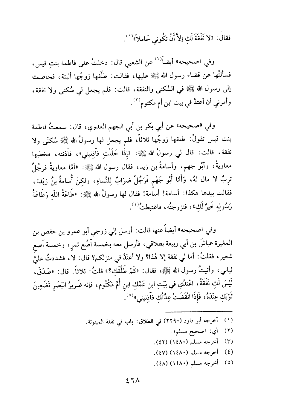 فَقَالَ " لَا نَفَقَةَ لَكِ إِلَّا أَنْ تَكُونِي حَامِلًا» ) .
