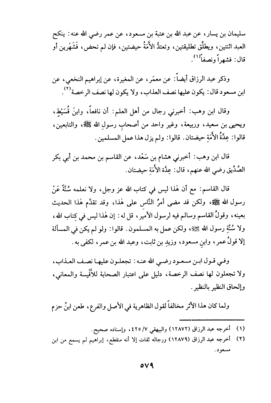 سُلَيْمَانَ بْنِ يَسَارٍ، عَنْ عبد الله بن عتبة بن مسعود، «عَنْ عمر رَضِيَ اللَّهُ عَنْهُ (يَنْكِحُ الْعَبْدُ اثْنَتَيْنِ وَيُطَلِّقُ تَطْلِيقَتَيْنِ وَتَعْتَدُّ الْأَمَةُ حَيْضَتَيْنِ فَإِنْ لَمْ تَحِضْ فَشَهْرَيْنِ، أَوْ قَالَ فَشَهْرًا وَنِصْفًا» ) .
