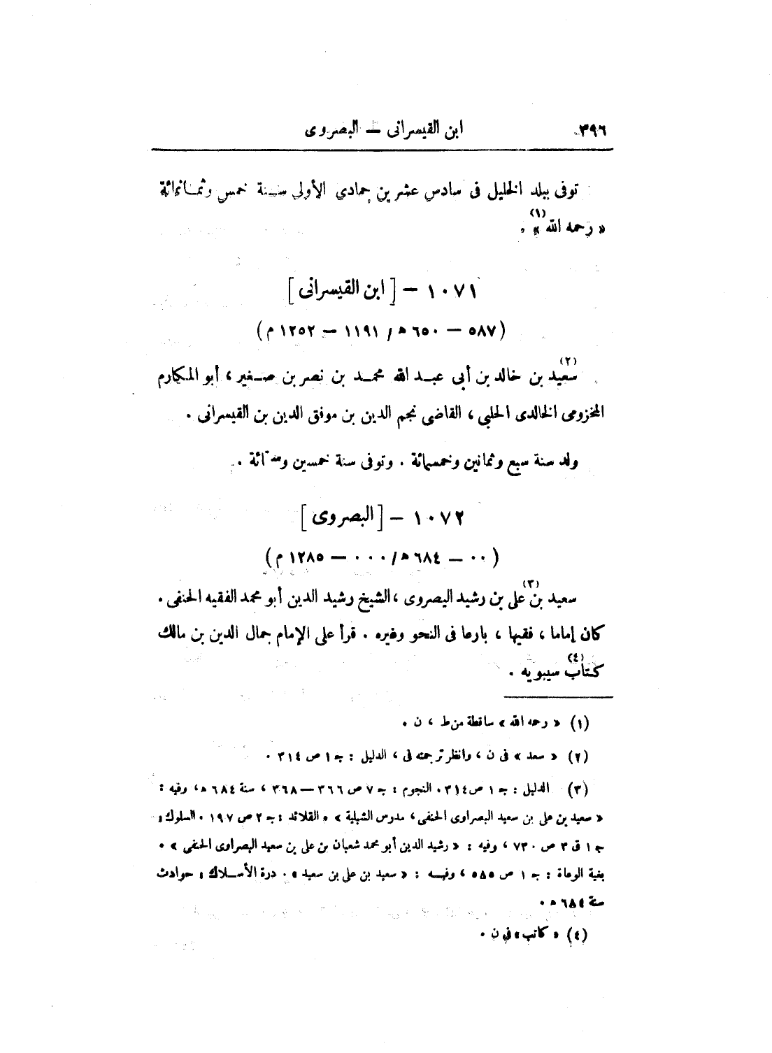 00 - 0 - 684هـ - 000 - 1285م سعيد بن علي بن رشيد البصروي، الشيخ رشيد الدين أبو محمد الفقيه الحنفي. كان إماماً، فقيهاً، بارعاً في النحو وغيره. قرأ على الإمام جمال الدين بن مالك كتاب سيبويه.