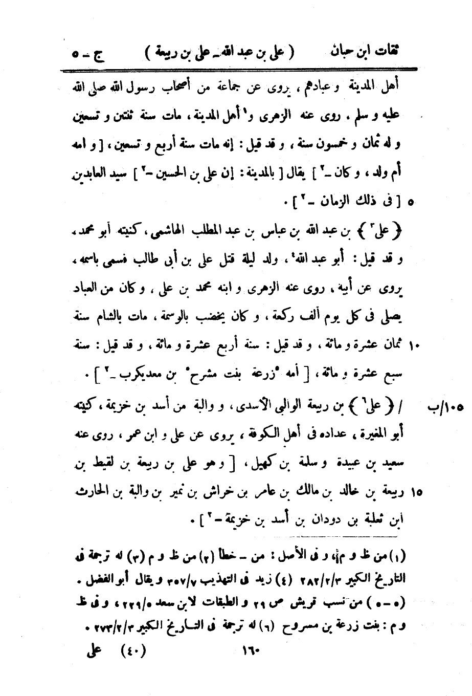 4369 - عَليّ بْن عَبْد اللَّه بْن عَبَّاس بْن عَبْد الْمطلب الْهَاشِمِي كُنْيَتُهُ أَبُو مُحَمَّد وَقد قيل أَبُو عَبْد اللَّه ولد لَيْلَة قتل عَليّ بن أَبِي طَالب فَسمى باسمه يَرْوِي عَن أَبِيه رَوَى عَنْهُ الزُّهْرِيّ وابْنه مُحَمَّد بن عَليّ وَكَانَ من الْعباد يصلى فِي كل يَوْم ألف رَكْعَة وَكَانَ يخضب بالوسمة مَاتَ بِالشَّام سنة ثَمَان عشرَة وَمِائَة وَقد قِيلَ سنة أَربع عشرَة وَمِائَة وَقد قِيلَ سنة سبع عشرَة وَمِائَة أمه زرْعَة بنت مشرح بن معديكرب