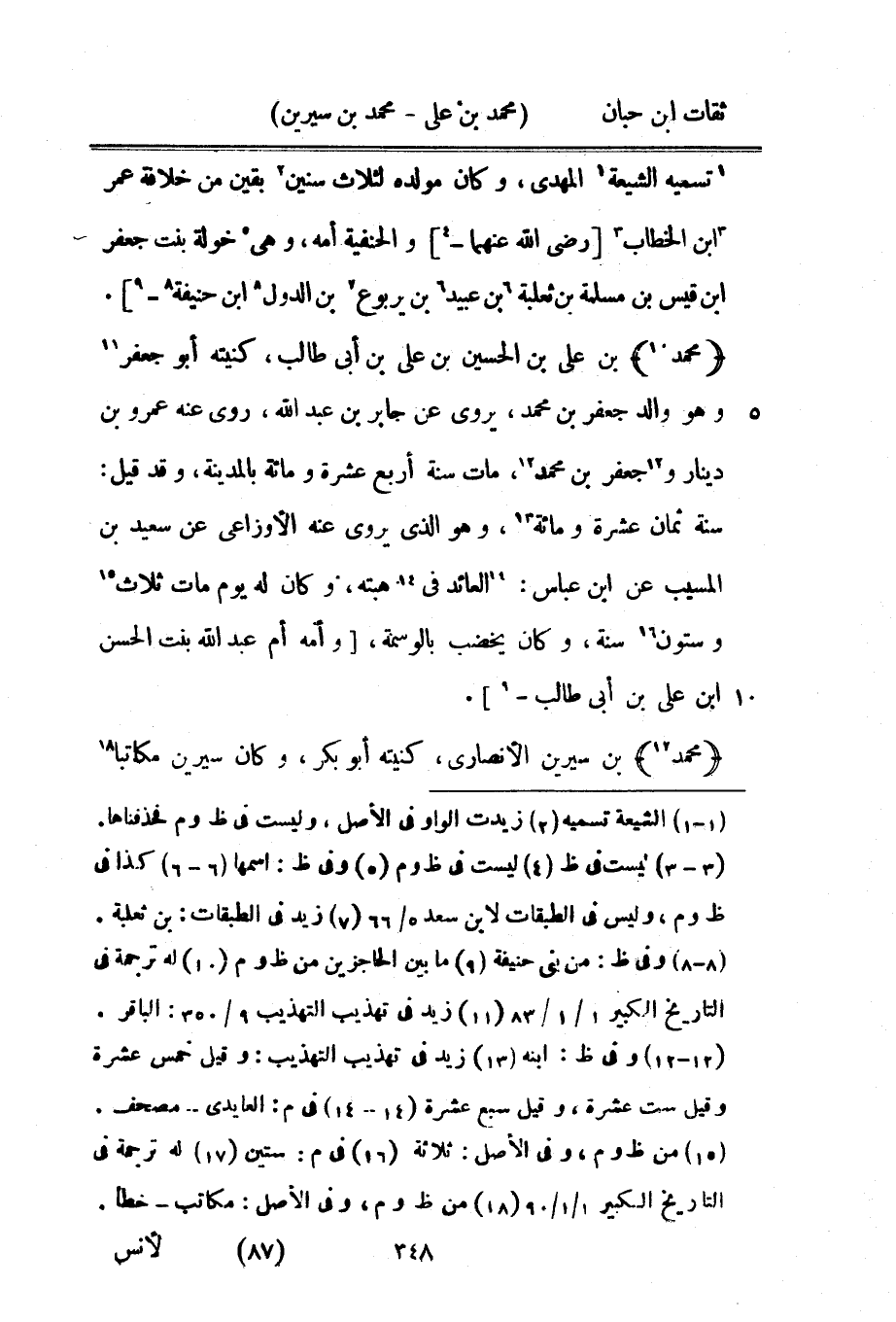 5160 - مُحَمَّد بن عَليّ بن الْحُسَيْن بن عَليّ بن أبي طَالب كنيته أَبُو جَعْفَر وَهُوَ وَالِد جَعْفَر بن مُحَمَّد يروي عَن جَابر بْن عَبْد الله روى عَنهُ عَمْرو بْن دِينَار وجعفر بن مُحَمَّد مَاتَ سنة أَربع عشرَة وَمِائَة بِالْمَدِينَةِ وَقد قِيلَ سنة ثَمَان عشرَة ومائه وَهُوَ الَّذِي يروي عَنهُ الْأَوْزَاعِيّ عَن سعيد بن الْمسيب عَن بن عَبَّاس الْعَائِد فِي هِبته وَكَانَ لَهُ يَوْم مَاتَ ثَلَاث وَسِتُّونَ سنة وَكَانَ يخضب بالوسمة وَأمه أم عبد الله بنت الْحسن بْن عَليّ بْن أبي طَالب