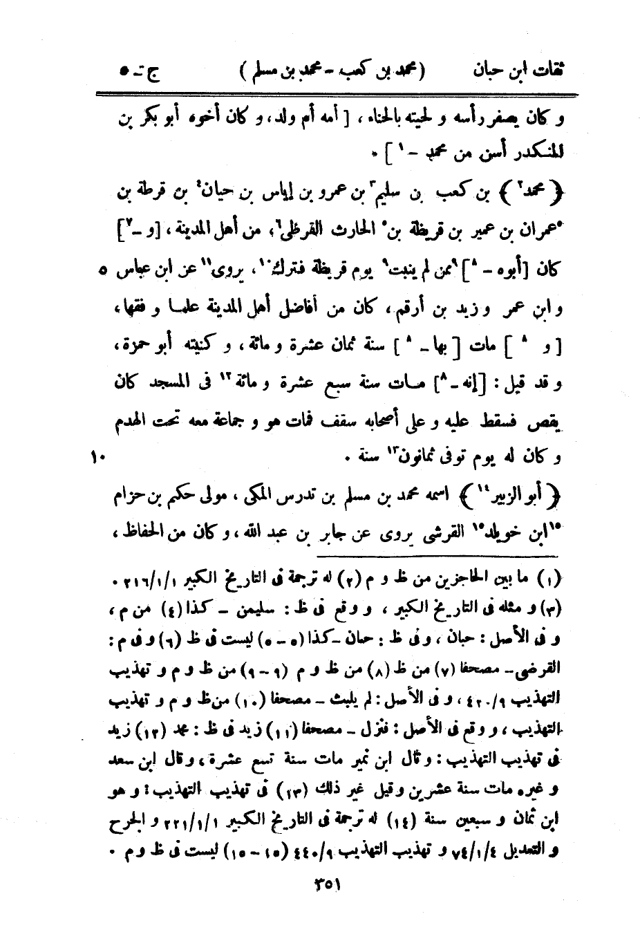 5164 - مُحَمَّد بن كَعْب بْن سليم بْن عَمْرو بْن إِيَاس بن حَيَّان بن قرظة بن عمرَان بن عُمَيْر بن قُرَيْظَة بن الْحَارِث الْقرظِيّ من أهل الْمَدِينَة وَكَانَ أَبوهُ مِمَّن لم ينْبت يَوْم قُرَيْظَة فَترك يرْوى عَن بن عَبَّاس وَابْن عمر وَزيد بن أَرقم كَانَ من أفاضل أهل الْمَدِينَة علما وفقها وَمَات بهَا سنة ثَمَان عشرَة وَمِائَة وكنيته أَبُو حَمْزَة وَقد قيل إِنَّه مَاتَ سنة سبع عشرَة وَمِائَة فِي الْمَسْجِد كَانَ يقص فَسقط عَلَيْهِ وعَلى أَصْحَابه سقف فَمَاتَ هُوَ وَجَمَاعَة مَعَه تَحت الْهدم وَكَانَ لَهُ يَوْم توفّي ثَمَانُون سنة