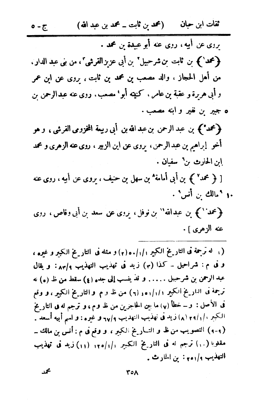 5192 - مُحَمَّد بْنُ عَبْدِ الرَّحْمَنِ بْنِ عَبْدٍ اللَّه بْن أبي ربيعَة المَخْزُومِي الْقرشِي وَهُوَ أَخُو إِبْرَاهِيم بن عبد الرَّحْمَن يروي عَن بْن الزبير روى عَنهُ الزُّهْرِيّ وَمُحَمّد بن الْحَارِث بن سُفْيَان