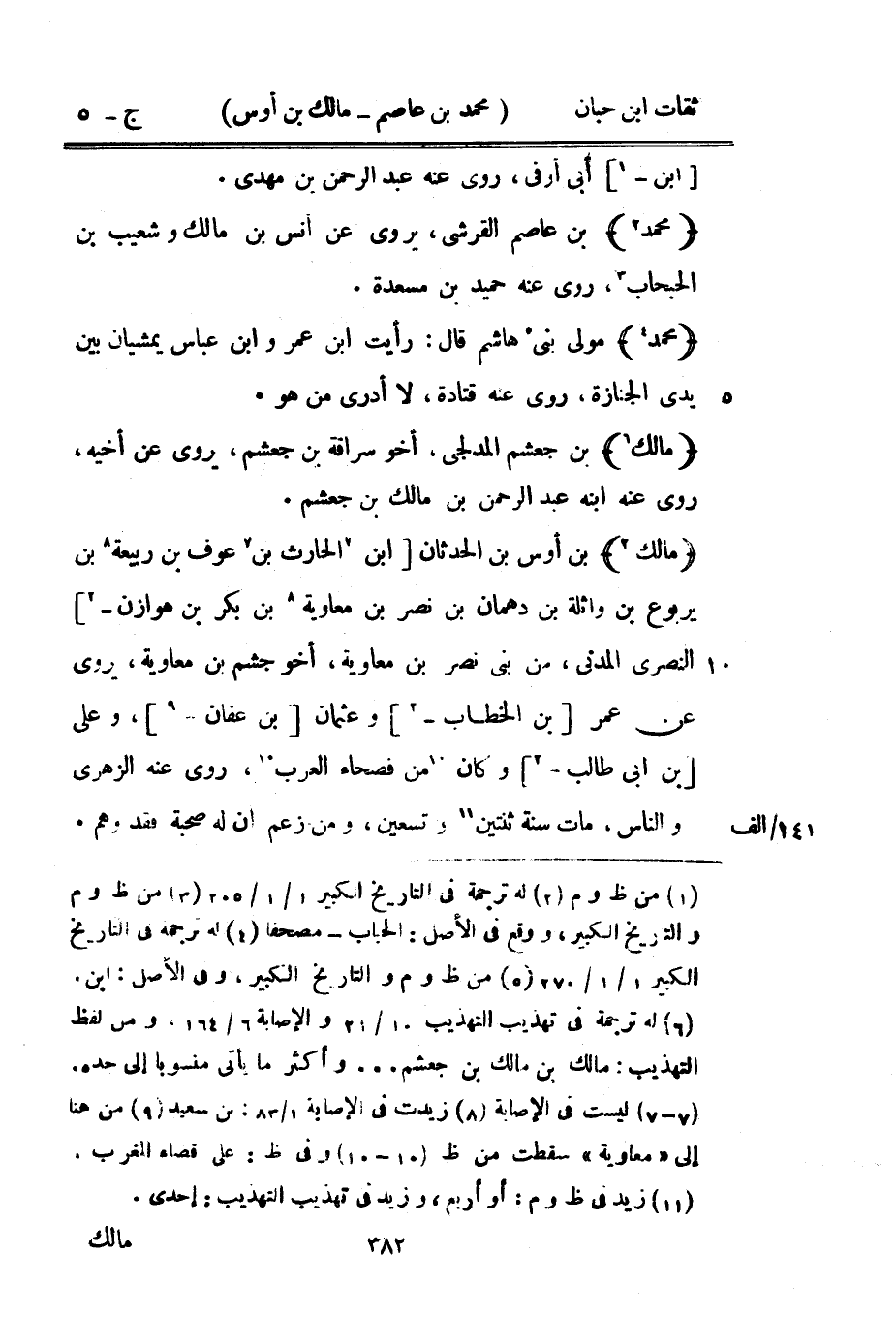5308 - مَالك بن أَوْس بن الْحدثَان بن الْحَارِث بن عَوْف بن ربيعَة بن يَرْبُوع بن وَاثِلَة بن دهمان بن نصر بن مُعَاوِيَة بن بكر بن هوَازن النصري الْمدنِي من بني نصر بن مُعَاوِيَة أَخُو جشم بن مُعَاوِيَة يروي عَن عمر بْن الْخطاب وَعُثْمَان بن عَفَّان وعَلى بن أبي طَالب وَكَانَ من فصحاء الْعَرَب روى عَنهُ الزُّهْرِيّ وَالنَّاس مَاتَ سنة ثِنْتَيْنِ وَتِسْعين وَمن زعم أَن لَهُ صُحْبَة فقد وهم