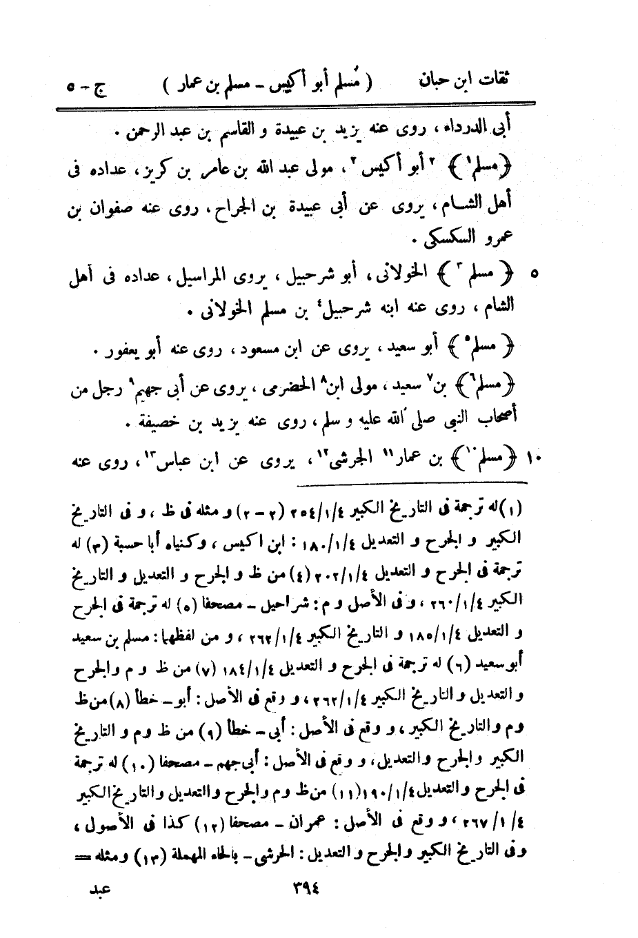 5367 - مُسلم أَبُو أَكيس مولى عَبْد اللَّه بْن عَامر بْن كريز عداده فِي أهل الشَّام يروي عَن أَبِي عُبَيْدَة بْن الْجراح روى عَنهُ صَفْوَان بن عَمْرو السكْسكِي
