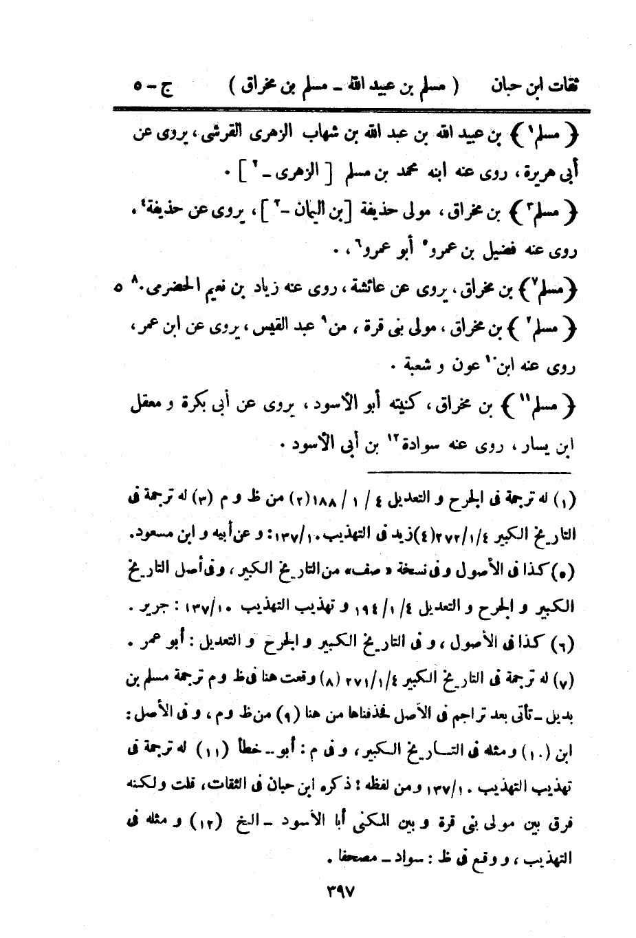 5385 - مُسلم بن مِخْرَاق كنيته أَبُو الْأسود يروي عَن أبي بكرَة وَمَعْقِل بن يسَار روى عَنهُ سوَادَة بن أبي الْأسود