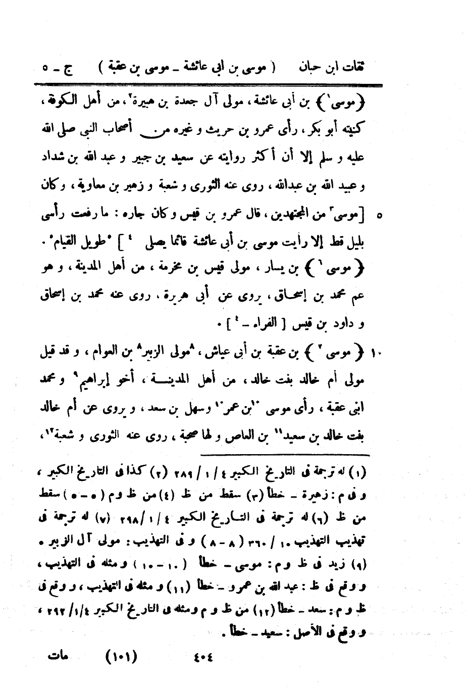 5423 - مُوسَى بن عقبَة بن أبي عَيَّاش مولى الزبير بن الْعَوام وَقد قيل مولى أم خَالِد بنت خَالِد من أهل الْمَدِينَة أَخُو إِبْرَاهِيم وَمُحَمّد ابْني عقبَة رأى مُوسَى بن عمر وَسَهل بن سعد ويروي عَن أم خَالِد بنت خَالِد بْن سعيد بْن الْعَاصِ وَلها صُحْبَة روى عَنهُ الثَّوْريّ وَشعْبَة