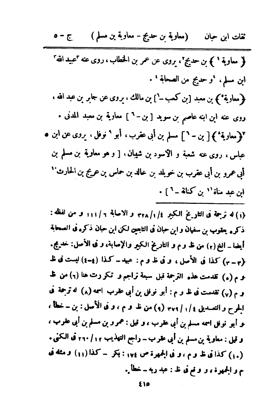 5475 - مُعَاوِيَة بن حديج يروي عَن عمر بْن الْخطاب روى عَنهُ عبيد الله بن مُسلم وحديج من الصَّحَابَة