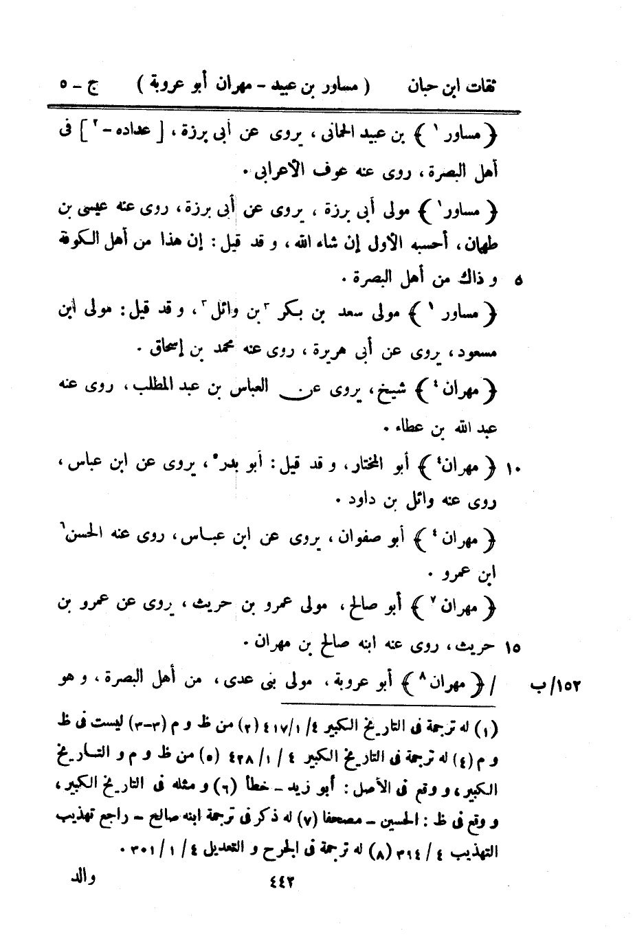 5620 - مساور بن عبيد الْحمانِي يروي عَن أبي بَرزَة عداده فِي أهل الْبَصْرَة روى عَنهُ عَوْف الْأَعرَابِي